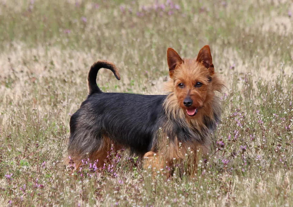 The Australian Terrier is noted as being one of the most modest of Terriers. They typically get along with other dogs and even cats if raised with them. They are very devoted to their families. They are eager to learn and quick to learn a new trick. They are adventurous and their prey instincts are still quite strong.